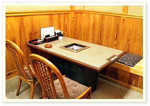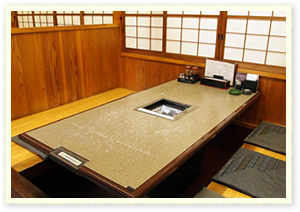 掘りごたつの個室。お肉は炭火で焼いていただきます。